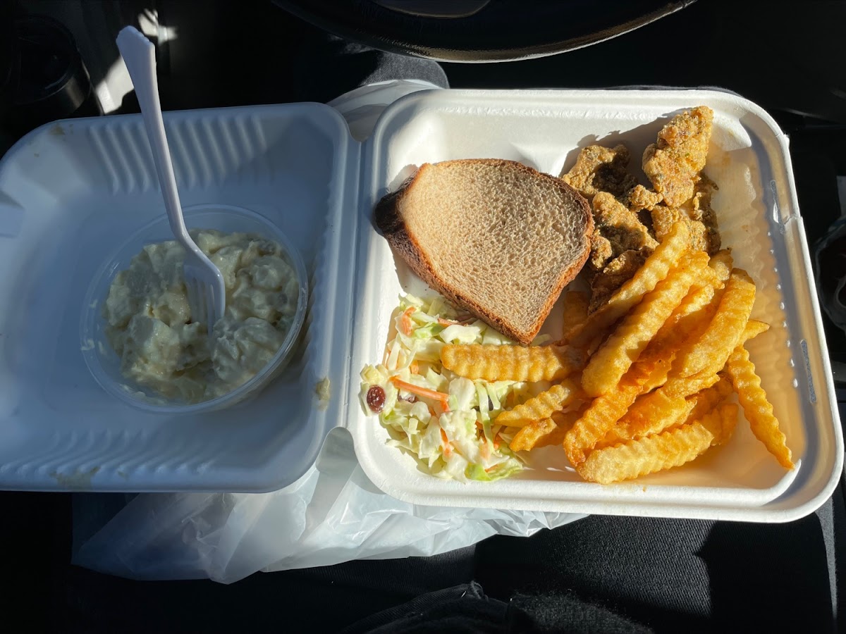 9 pieces red snapper 2 large sides and fries.